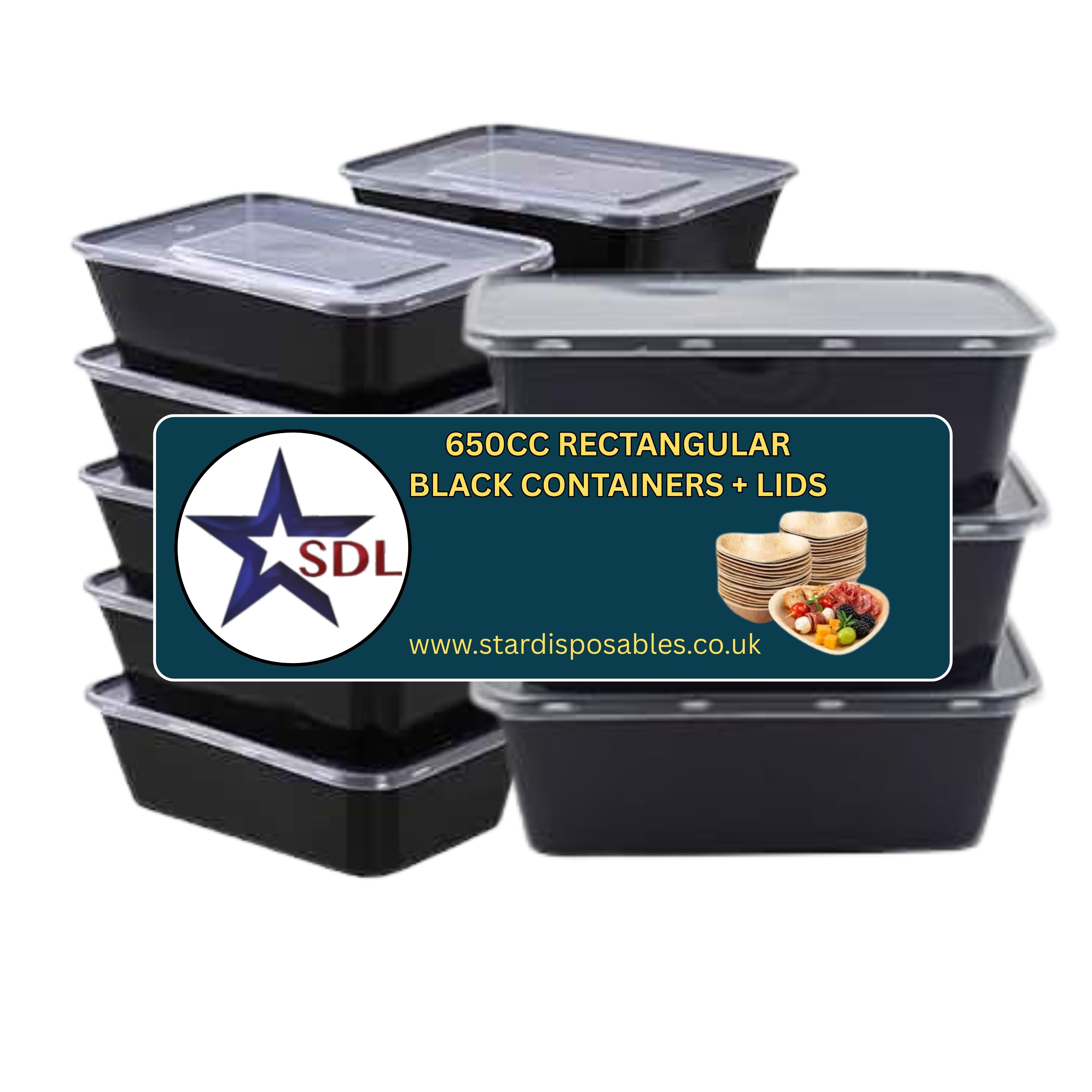 1000CC RECTANGULAR BLACK CONTAINERS+LIDS